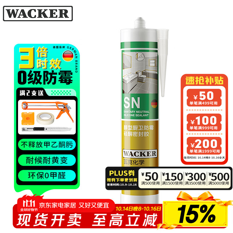 瓦克(WACKER)SN防霉玻璃胶厨卫中性水槽马桶防水密封胶封边美容胶结构胶瓷白