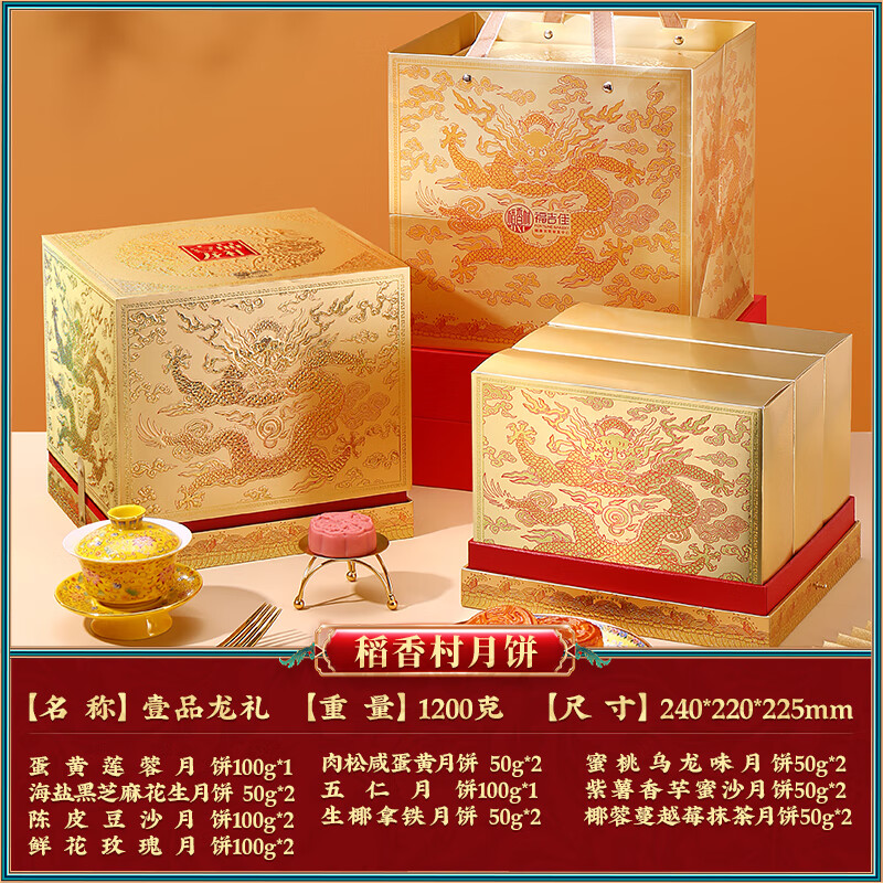 稻香村月饼礼盒 广式蛋黄莲蓉五仁中秋公司福利企业团购 壹品龙礼 1200g