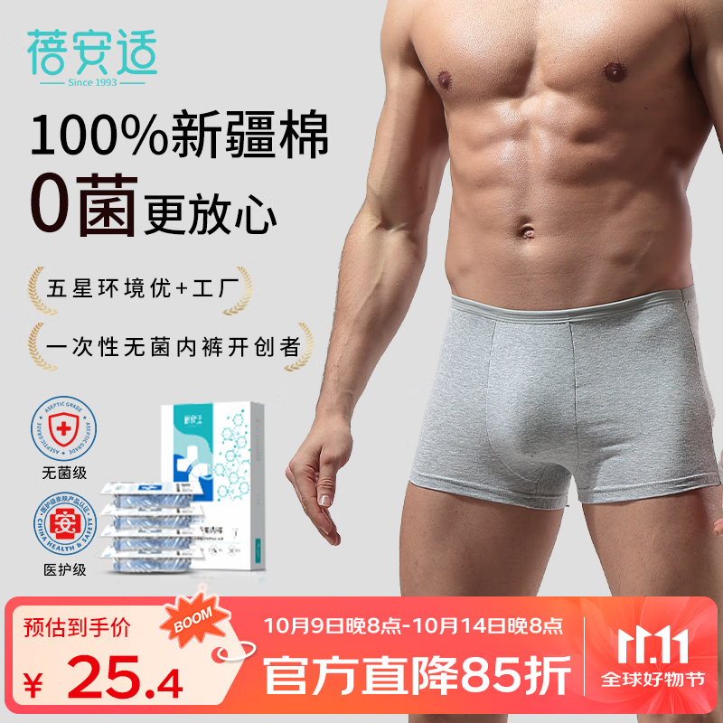 蓓安适一次性内裤男无菌纯棉旅行便携免洗短裤双档4条装 平角男灰XXXL码