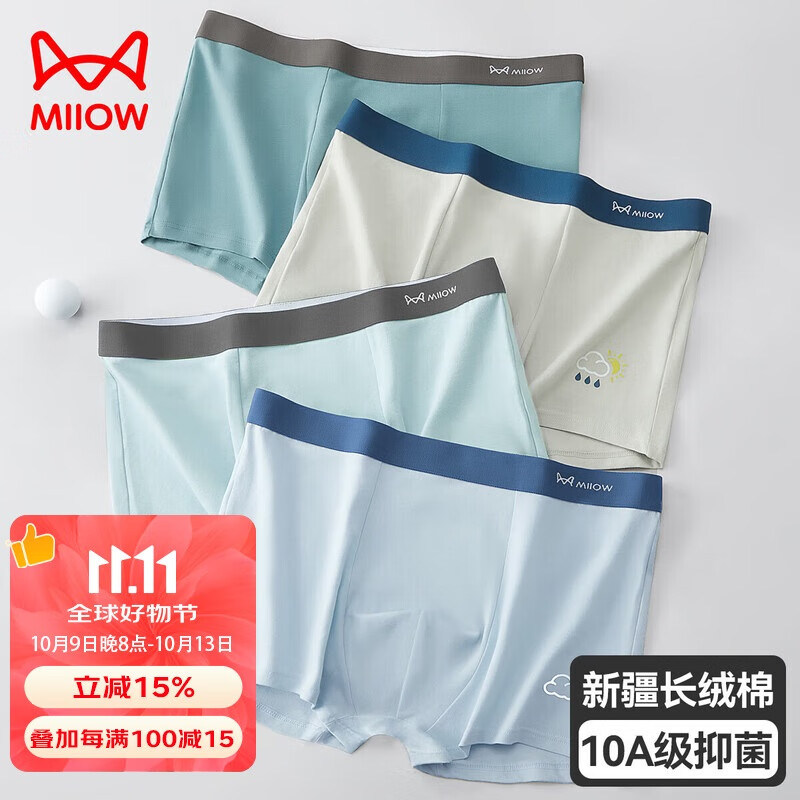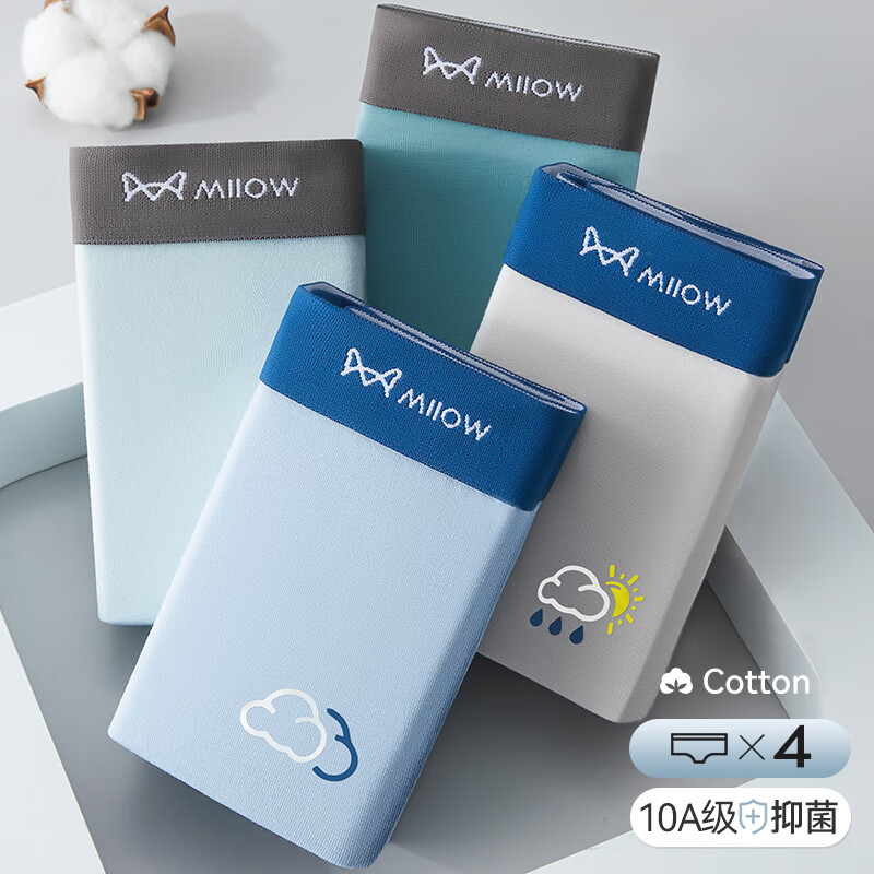 猫人25年新品青少年男士内裤男抗菌纯棉平角裤青春期发育期短裤4条装