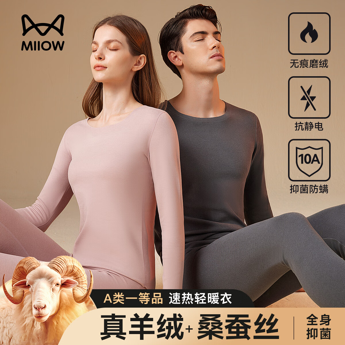 猫人A类德绒发热10A抑菌防螨羊绒蚕丝男士保暖内衣男加绒秋衣秋裤套装