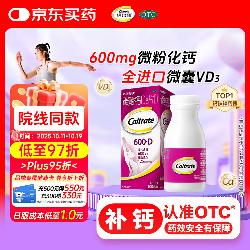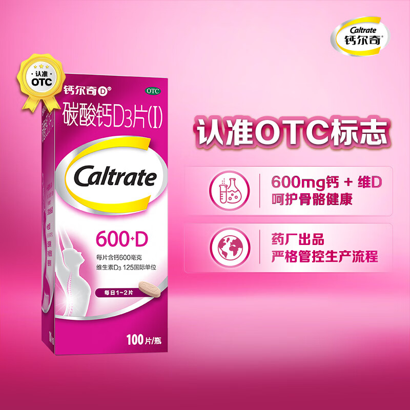 钙尔奇碳酸钙D3片100片OTC成人钙孕妇哺乳补钙含维生素d3补充剂老年钙手足抽筋预防骨质疏松