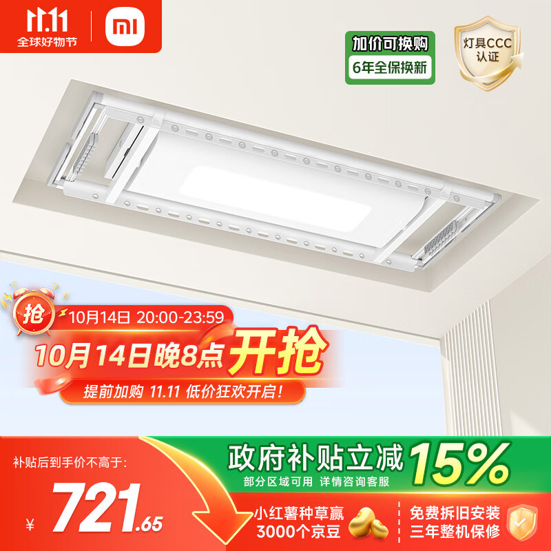 米家智能晾衣机1S【国家补贴】小米电动隐形晾衣架超薄机身无线遥控