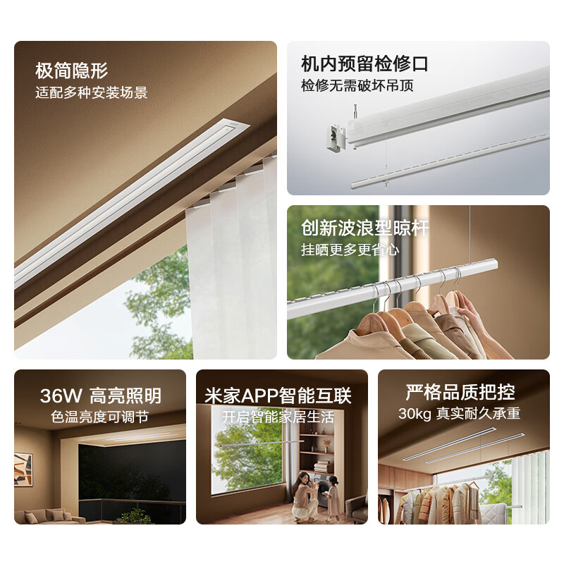 米家智能隐形晾衣机单杆 【国家补贴】小米电动晾衣架隐藏嵌入式