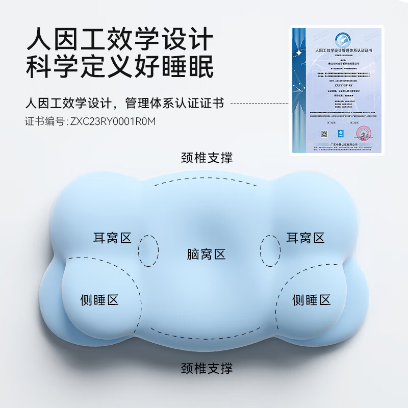 时光存折云朵枕头 记忆棉护颈枕 护脊颈椎枕侧睡趴睡枕儿童枕学生成人可用 高枕【原味】-晴空蓝