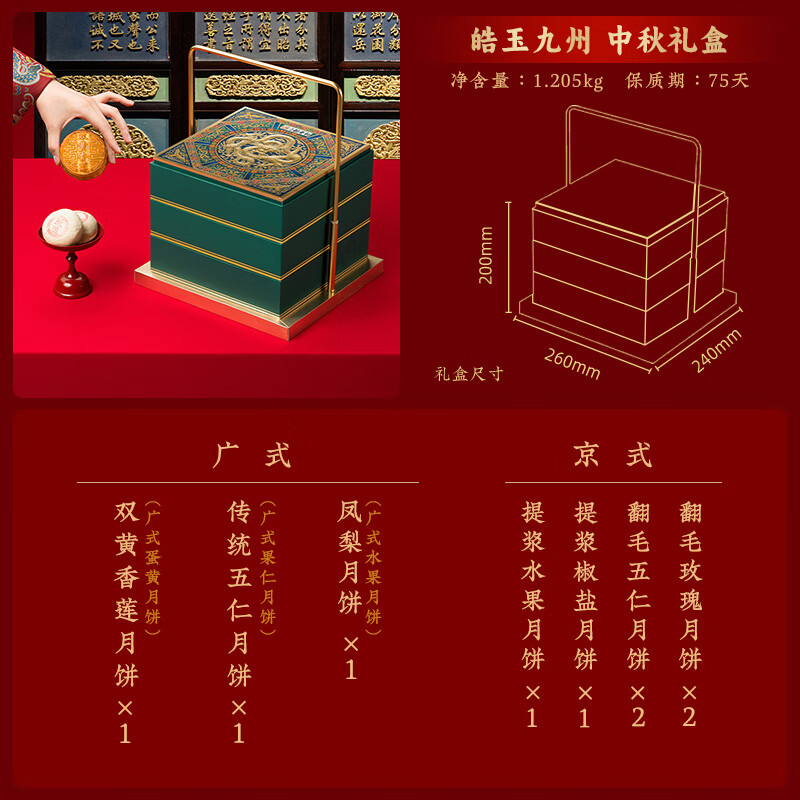 北京稻香村中秋月饼礼盒送礼礼品团购福利五仁月饼大月饼 皓玉九州1205g