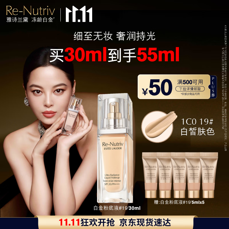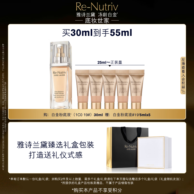 雅诗兰黛白金粉底液19#(1C0)30ml白皙肤色遮瑕化妆品礼盒护肤品生日礼物