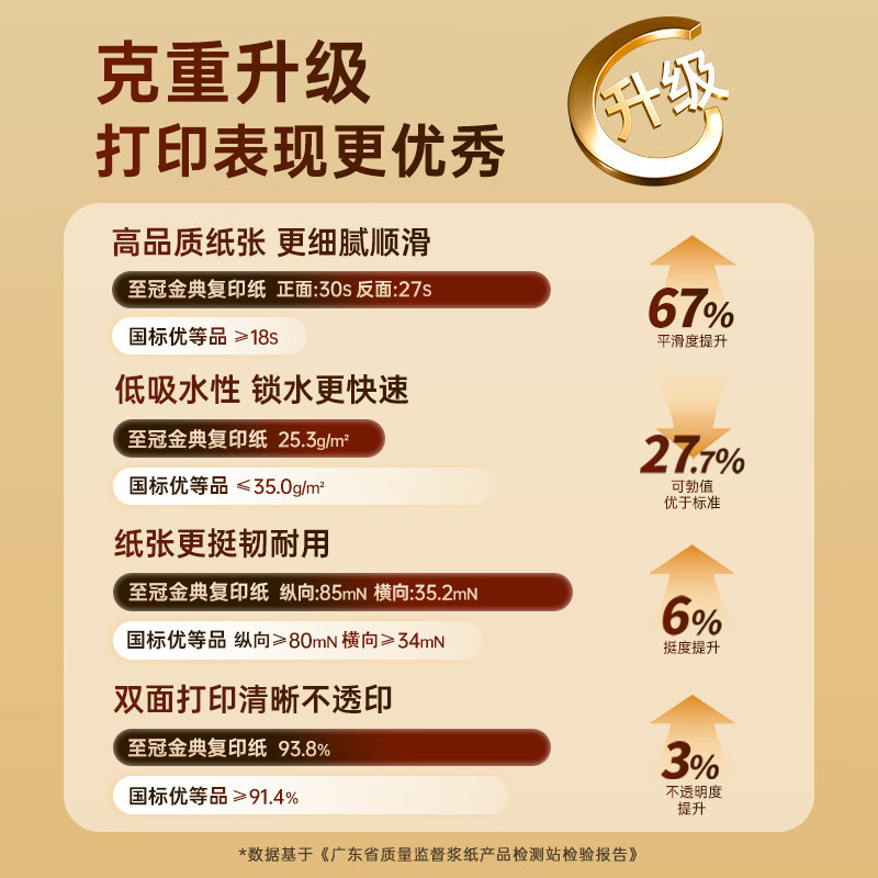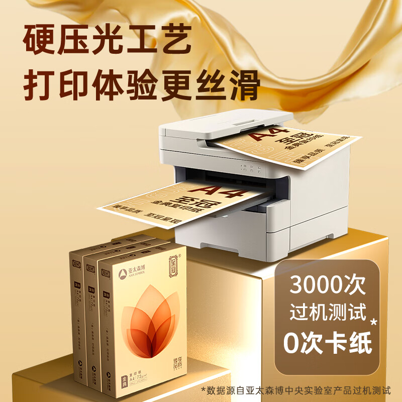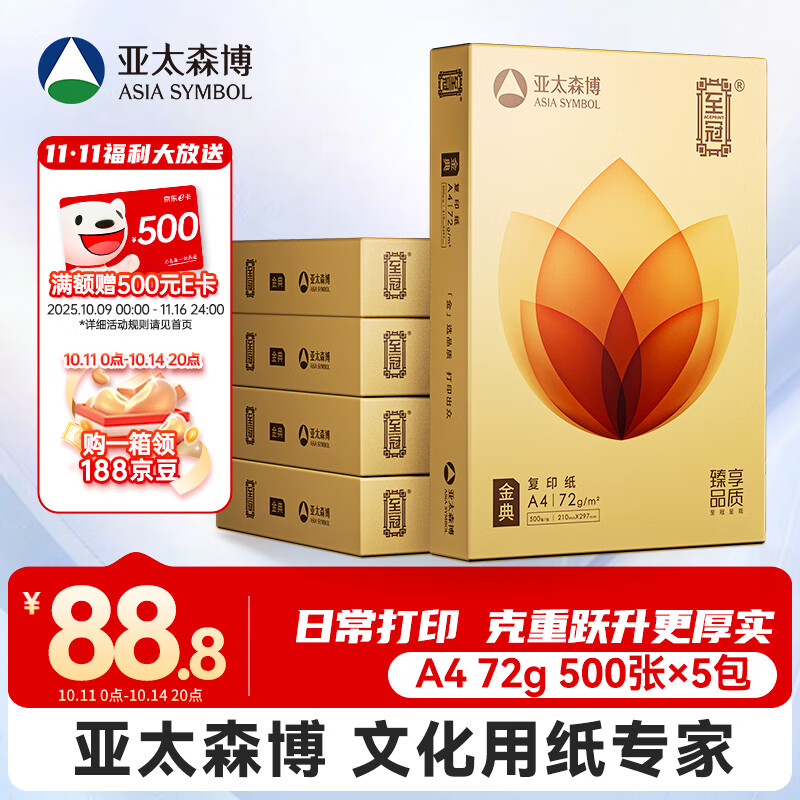 亚太森博至冠(金典)A4打印纸 72g500张*5包一箱 办公用纸 高清影印 双面不透印复印纸 整箱2500张