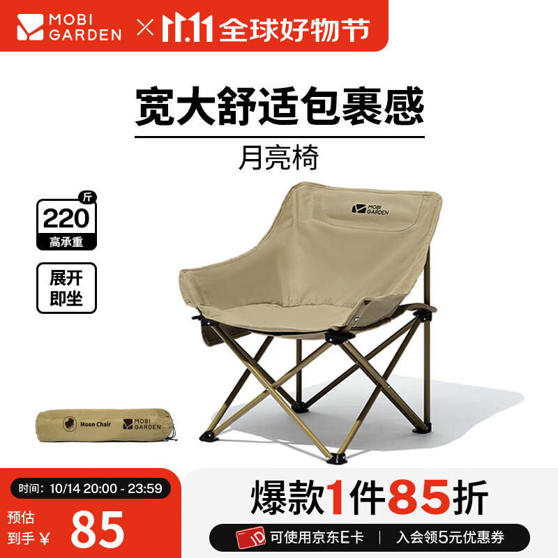 牧高笛(MOBIGARDEN)月亮椅 户外露营便携靠背钓鱼椅懒人椅家庭休闲折叠椅 【常规款】细沙黄