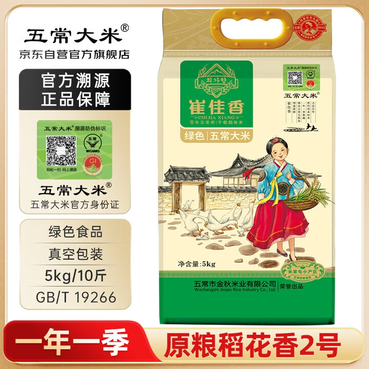 五常大米 官方溯源 崔佳香 绿色食品 原粮稻花香2号 东北大米 10斤