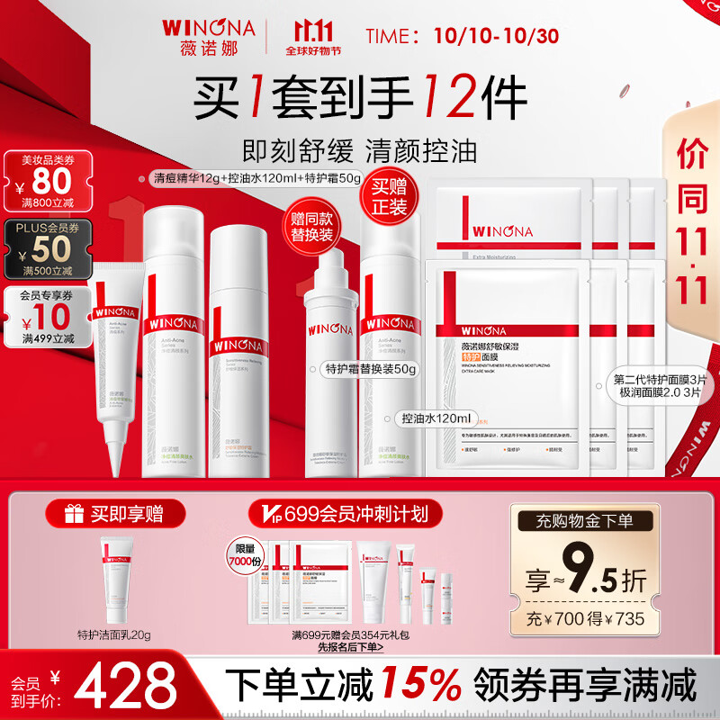 薇诺娜痘敏肌水乳精华三件套控油水第二代特护霜清痘精华