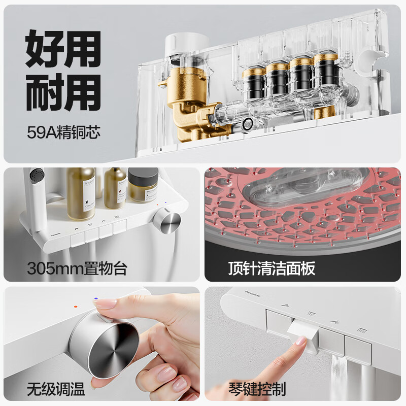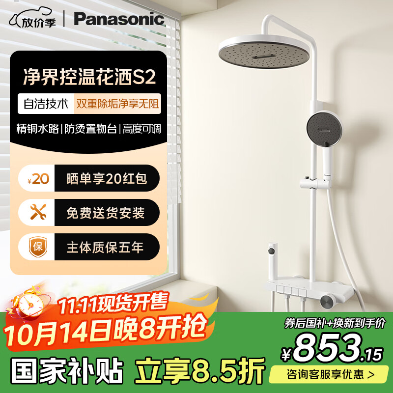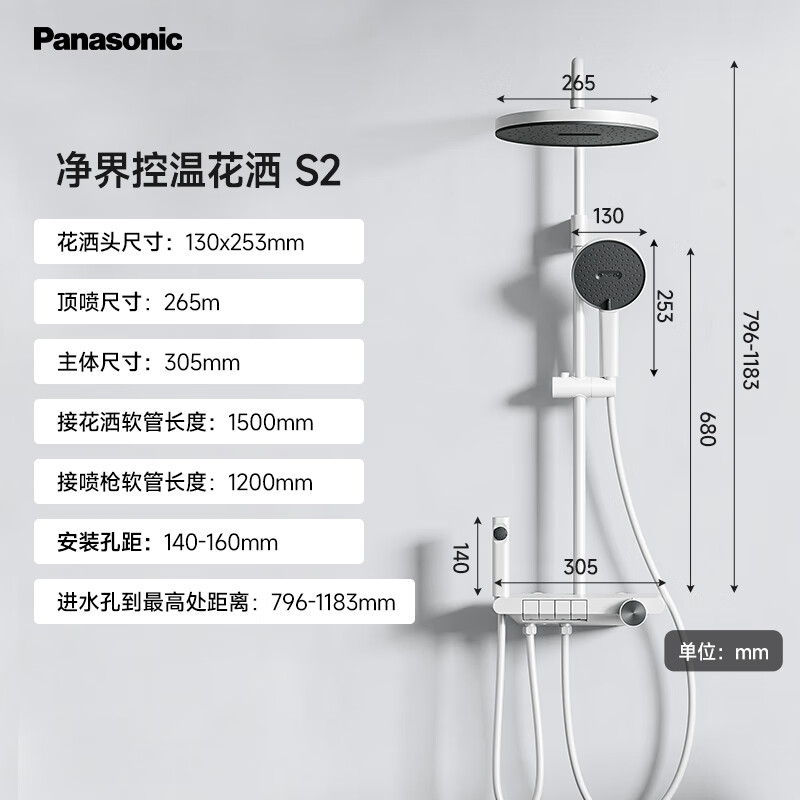 松下(Panasonic)自洁除垢顶喷花洒套装S2 家用卫生间洗澡冷热淋浴器