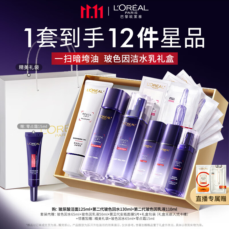 欧莱雅玻色因洁水乳套装礼盒补水保湿抗皱护肤品生日礼物