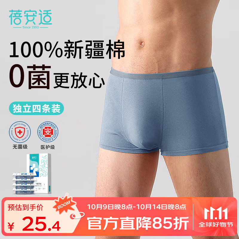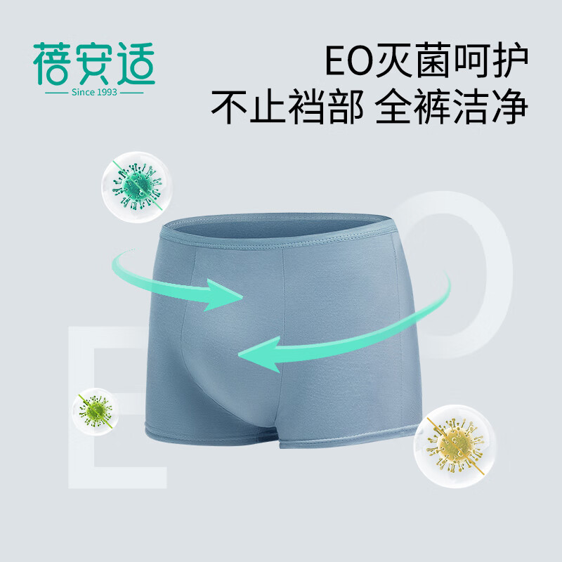 蓓安适一次性内裤男纯棉旅行便携免洗短裤双档平角灰蓝四条装 XXL码