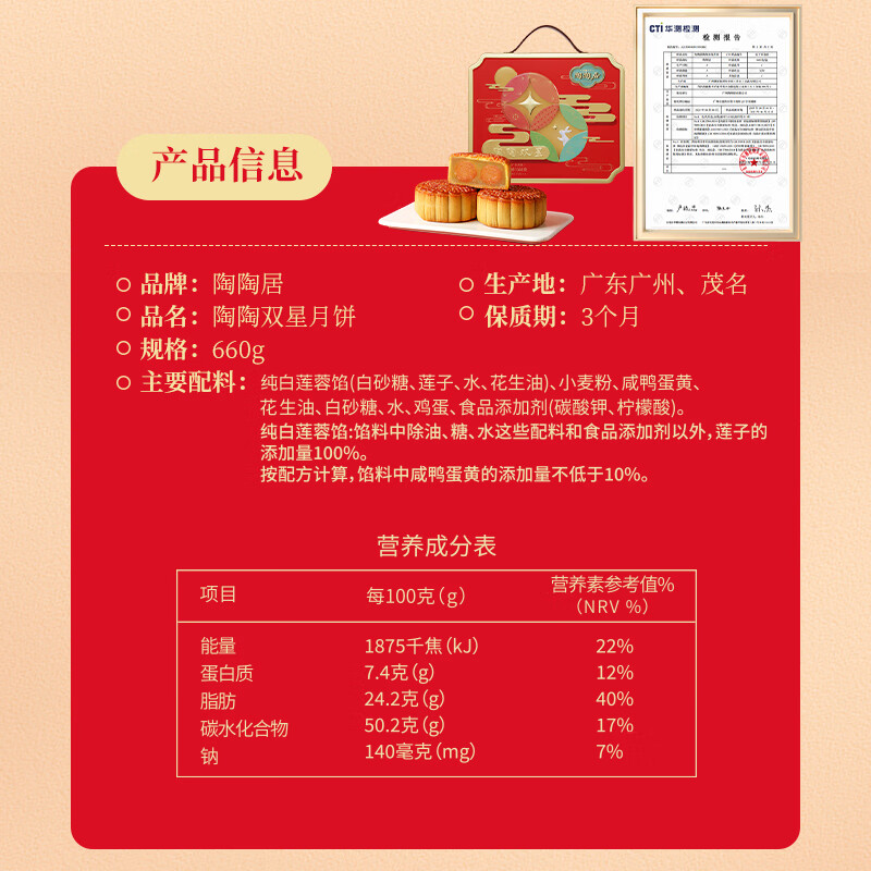 陶陶居月饼 陶陶双星礼盒660g 双黄白莲蓉广式酒家团购福利中秋节庆送礼