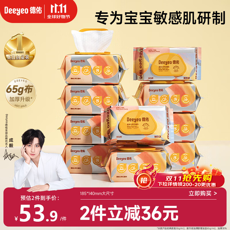 德佑婴儿手口湿巾 加厚尊享版新生儿湿纸巾手口屁屁专用 80抽10包
