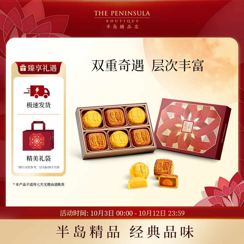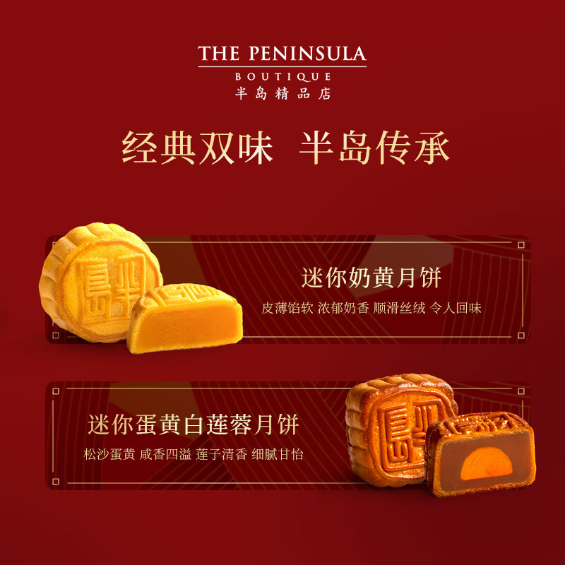 半岛(The Peninsula)迷你奶黄及白莲蓉6粒285g进口港式月饼中秋节团购送礼礼盒