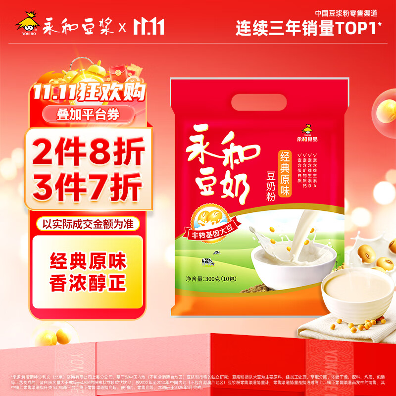 永和豆浆经典原味豆奶粉 300g 30g*10含多种维生素 高蛋白 即食早餐代餐