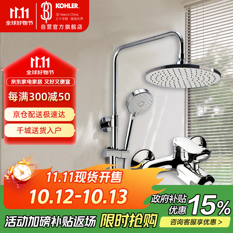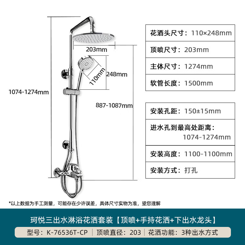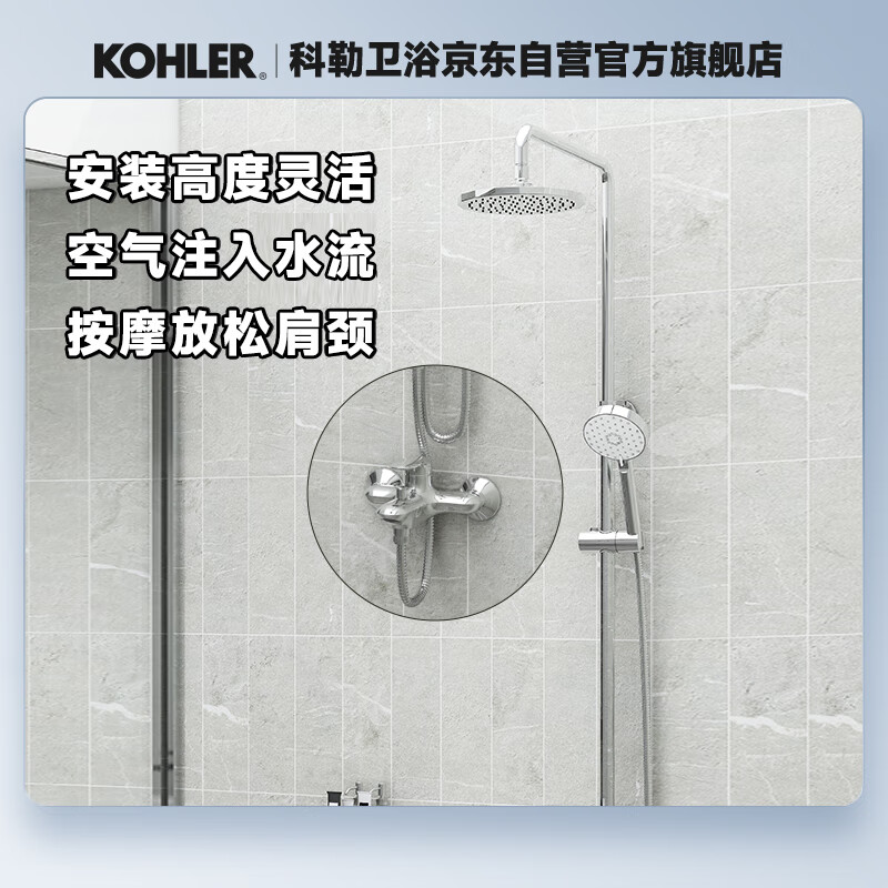 科勒(KOHLER)三出水淋浴柱圆形顶喷多功能可升降非恒温淋浴花洒套装76536T