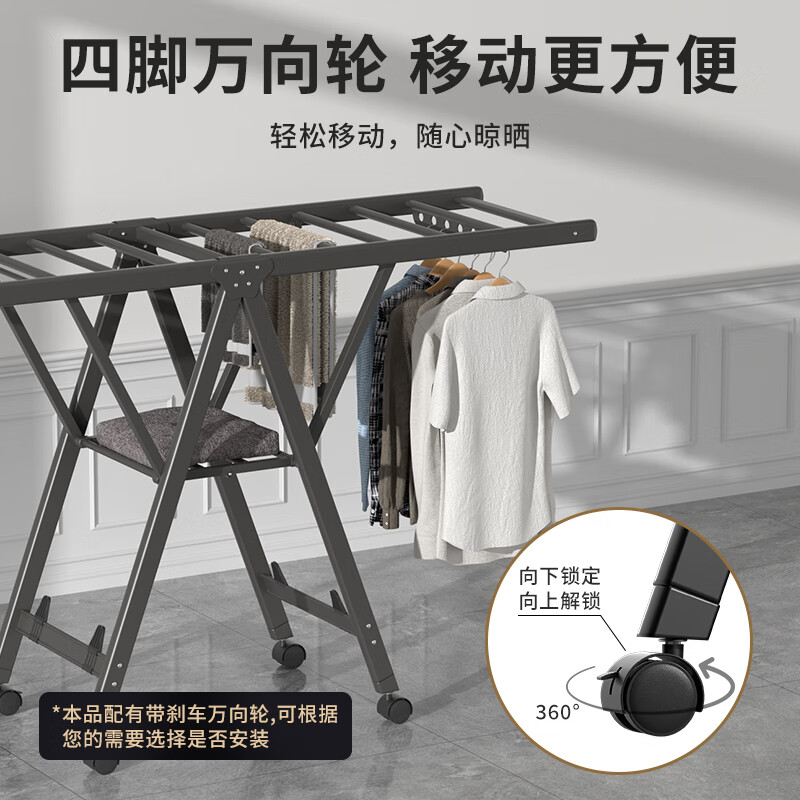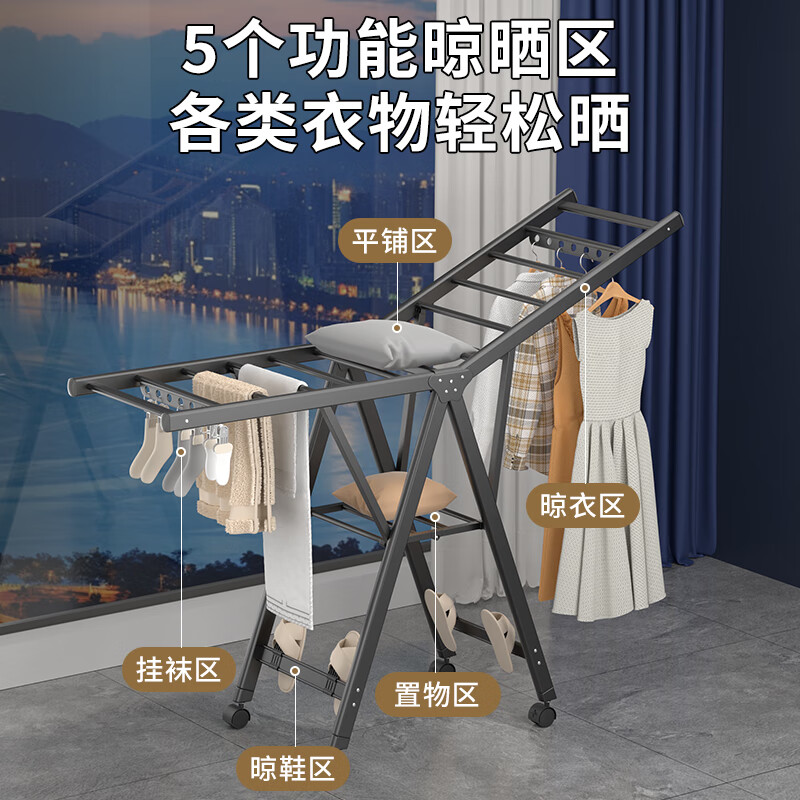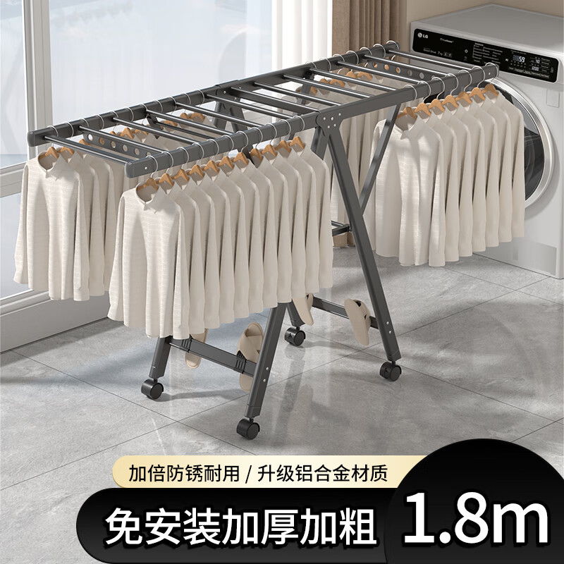 妙立晾衣架落地铝合金可折叠室内可移动家用阳台户外防风挂衣架晒被子