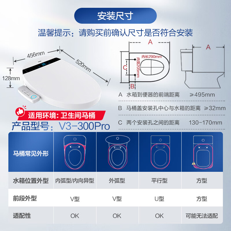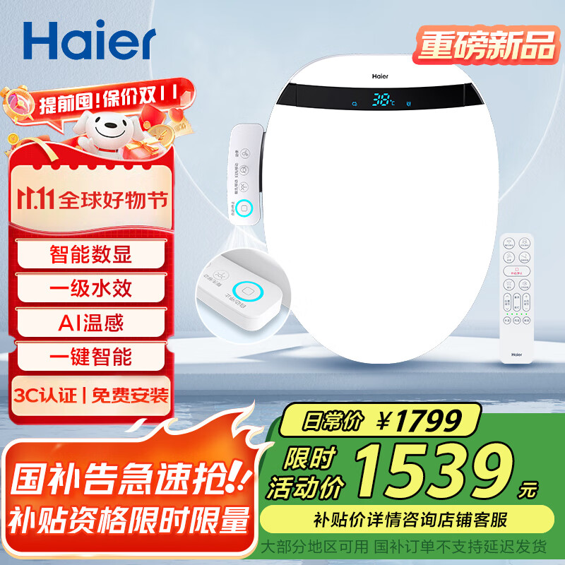 海尔(Haier)智能马桶盖 1级水效数显 AI温感除臭全自动坐便盖25年新款300Pro