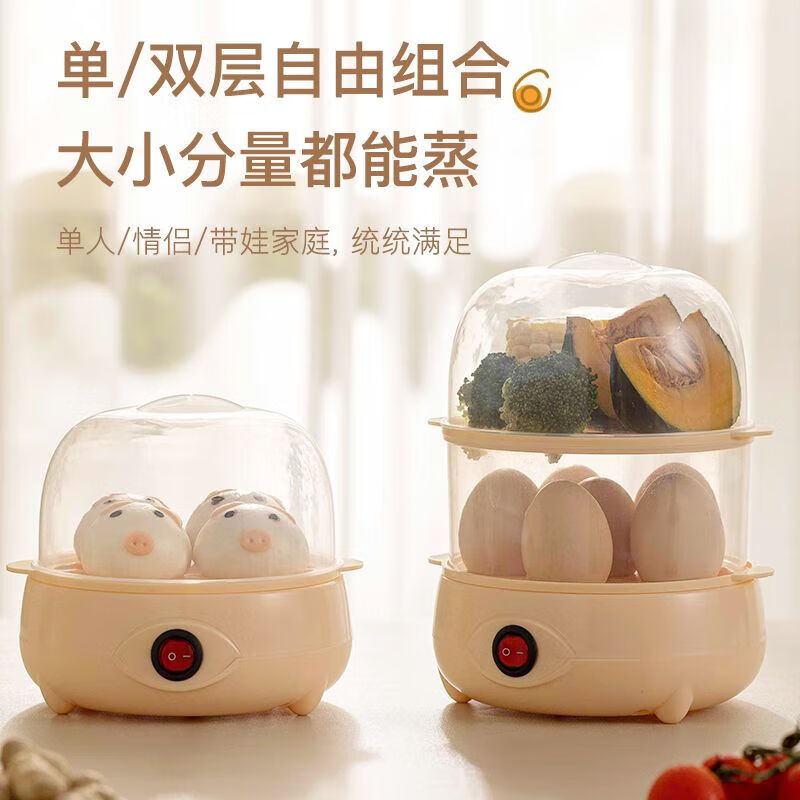 智能蒸蛋器多功能煮蛋器大容量蒸蛋羹神器早餐机全自动电蒸锅 单层 乳白色【蒸煮神器】