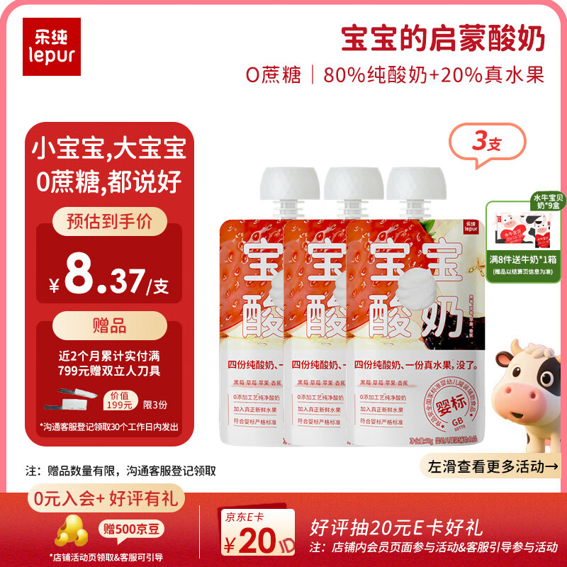 乐纯婴标宝宝酸奶草莓50g*3支 常温辅食0添加0蔗糖儿童零食(6个月+)