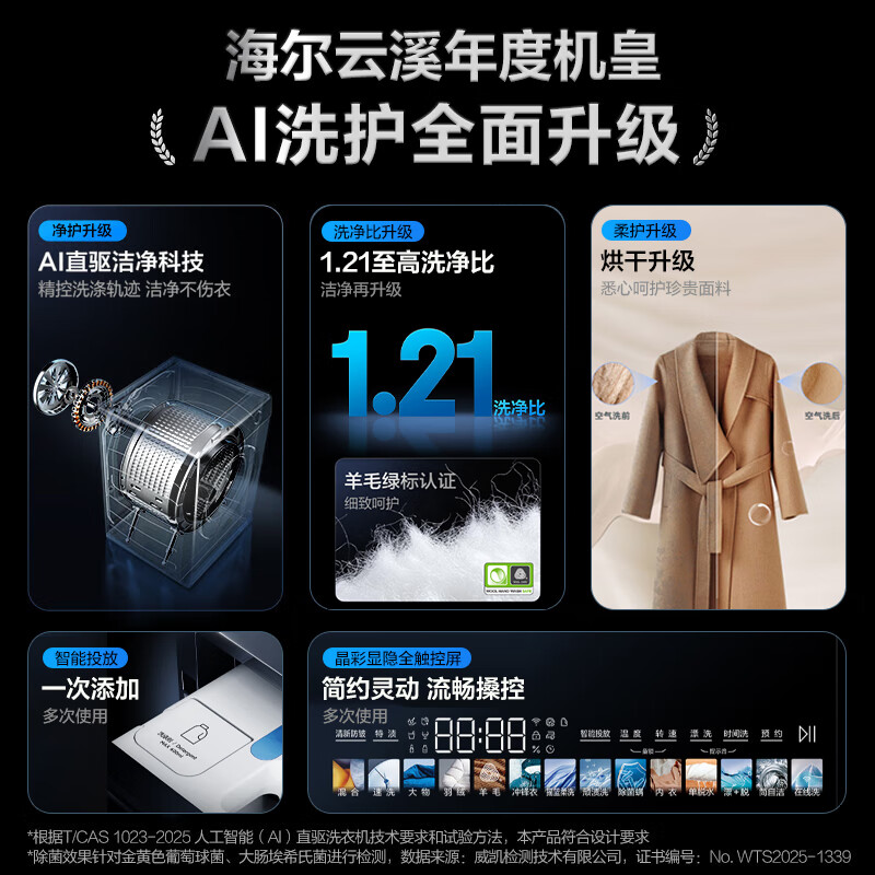 海尔(Haier)云溪3.0滚筒洗衣机全自动洗烘一体带烘干10公斤 超薄家用家电国家补贴 自营583 一级能效以旧换新