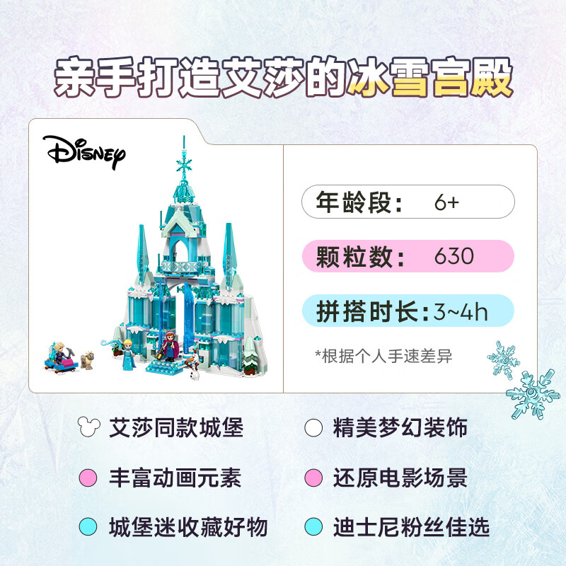乐高(LEGO)积木拼装迪士尼43244 艾莎冰雪宫殿城堡女孩儿童玩具生日礼物