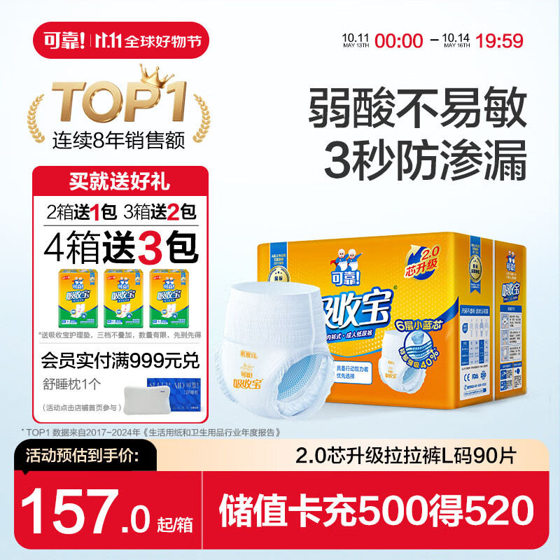 可靠(COCO)吸收宝成人拉拉裤2.0芯升级L90片(臀围95-120cm)老人内裤型纸尿裤