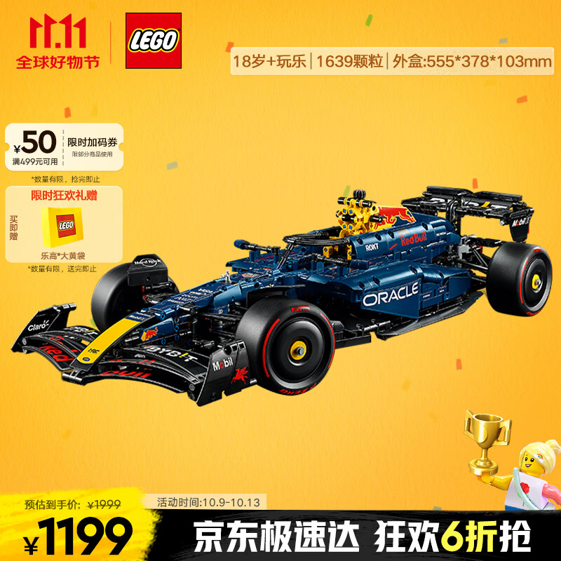 乐高(LEGO)积木拼装机械组系列42206 红牛车队F1赛车男孩玩具生日礼物
