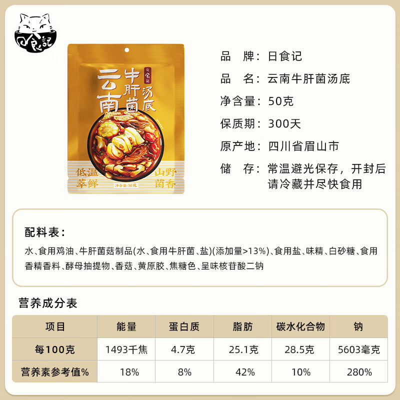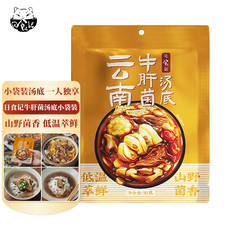 日食记云南牛肝菌汤底50g火锅底料不辣三鲜菌菇锅底香菇料煲汤料高汤