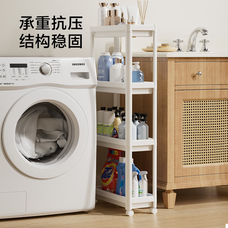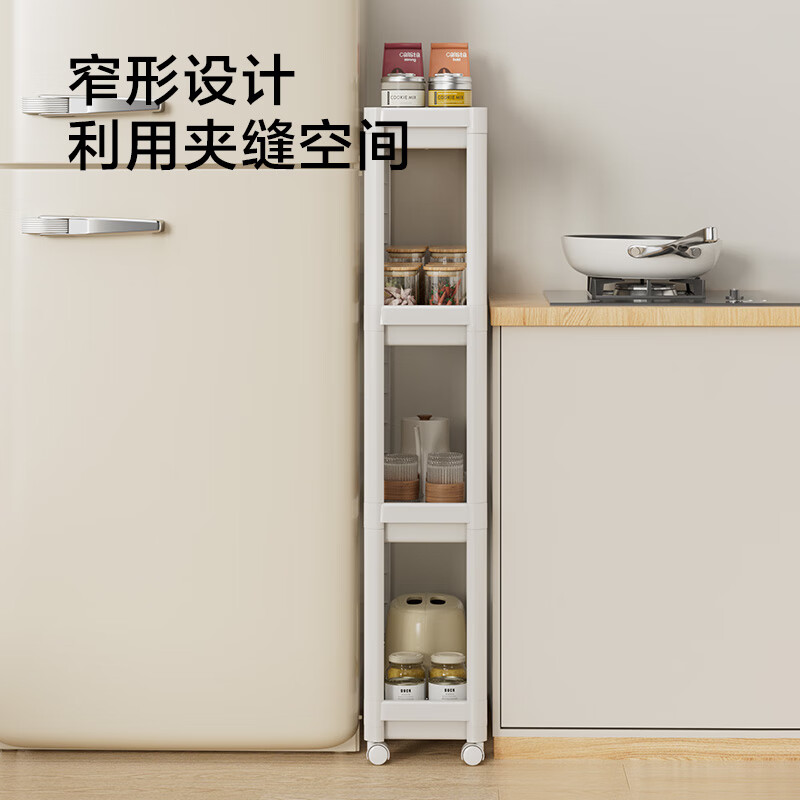 京东京造 厨房置物架 落地收纳柜调料餐边碗橱柜储物蔬菜小推车 白色 4层