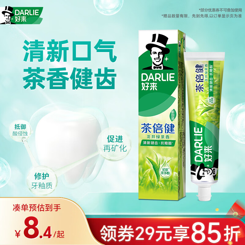 好来(DARLIE)(原黑人)茶倍健龙井绿茶牙膏 清新口气护龈健齿120g 新旧随机