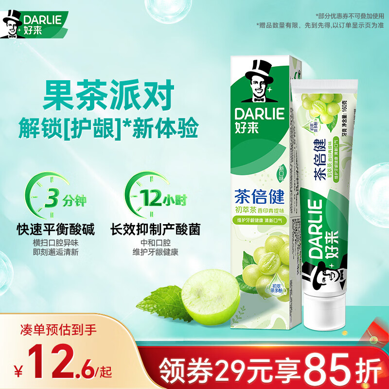 好来(DARLIE)(原黑人)茶倍健初萃茶青提味牙膏160g平衡口腔酸碱新旧包装随机