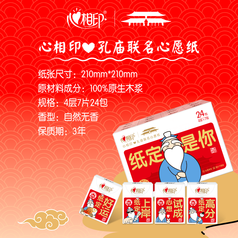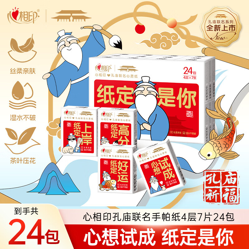 心相印×孔庙祈福手帕纸 茶语丝享4层7张24包便携纸巾 面巾纸