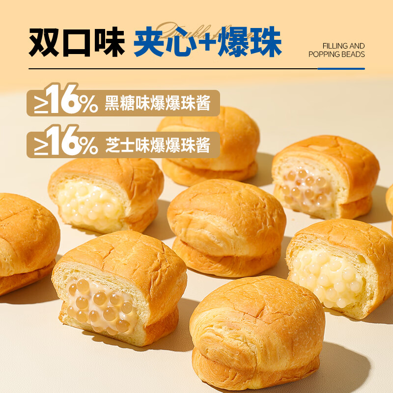 泓一爆珠流心面包混合口味 营养早餐夹心面包休闲零食下午茶糕点450g
