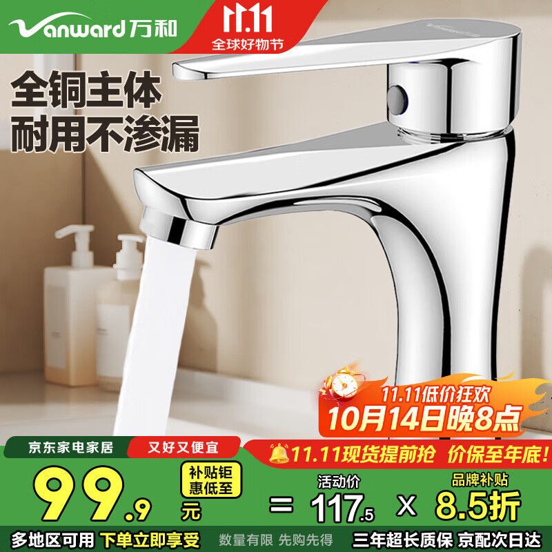 万和面盆水龙头全铜冷热洗手盆龙头卫生间浴室洗脸洗漱台盆通用M08Y