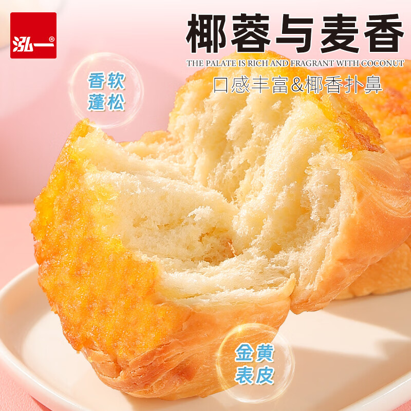 泓一椰蓉面包 营养早餐面包手撕代餐零食饱腹糕点心下午茶600g
