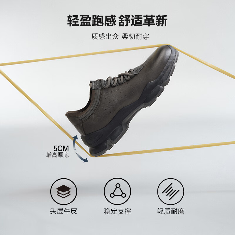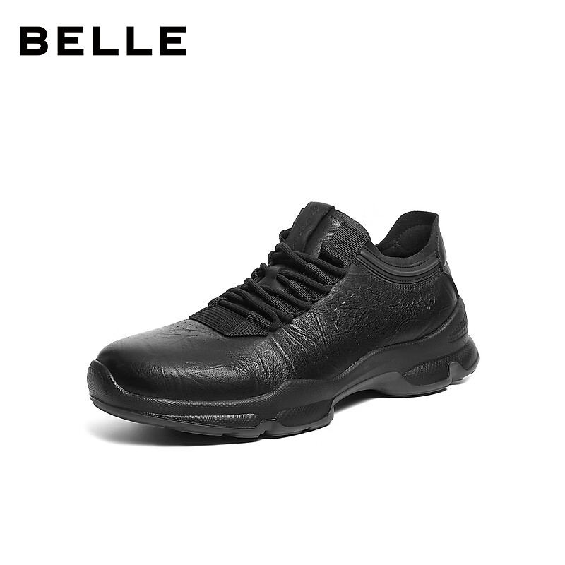 百丽厚底增高健步鞋男25秋新抓纹牛皮户外休闲运动鞋A2215CM5【预售】 黑色 42 (260mm)