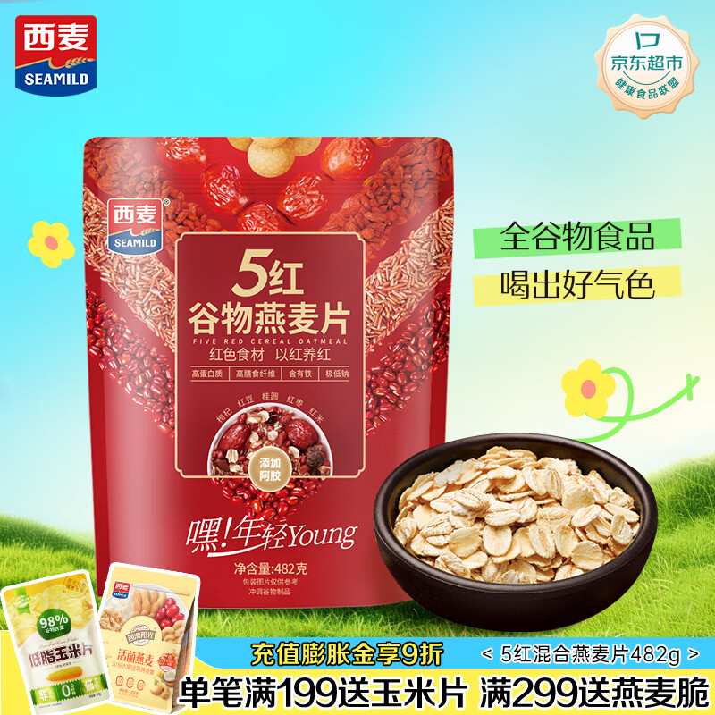 西麦5红混合谷物燕麦片482g 营养早餐谷物代餐无额外添加蔗糖