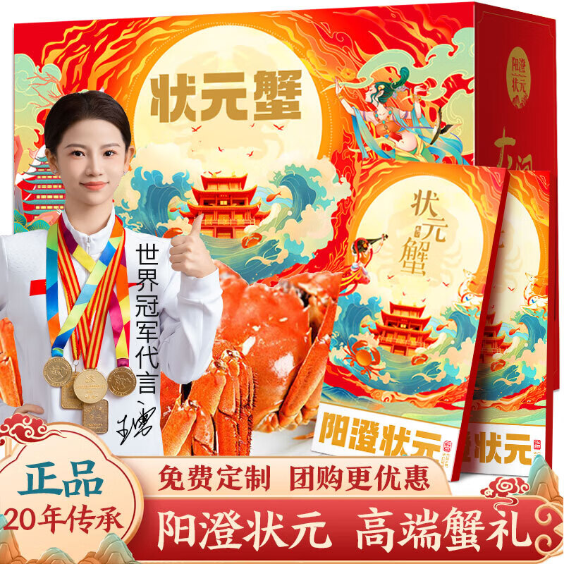 【礼券】阳澄状元大闸蟹礼券9999型公7.0两母5.0两5对海鲜螃蟹卡券团购礼盒礼品卡湖蟹