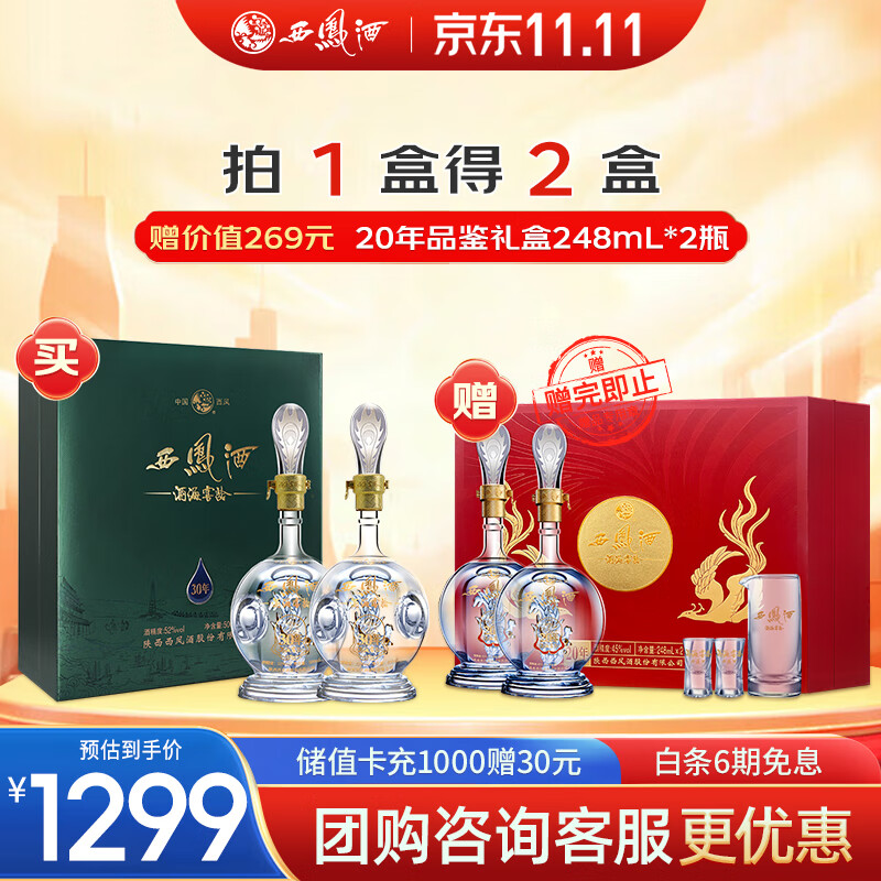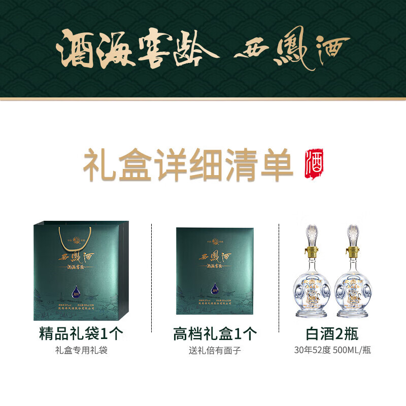 西凤酒 30年礼盒 500mL*2瓶 52度陈年凤香型白酒 婚庆喜宴请送长辈