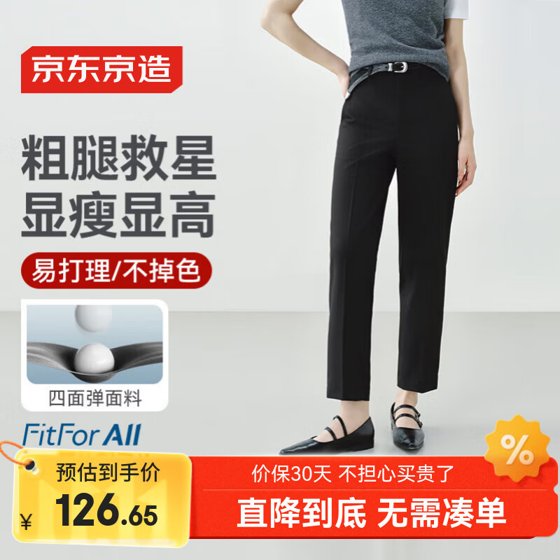 京东京造西裤女秋季新款显瘦休闲裤子女宽松显瘦直筒四面弹 黑色 M