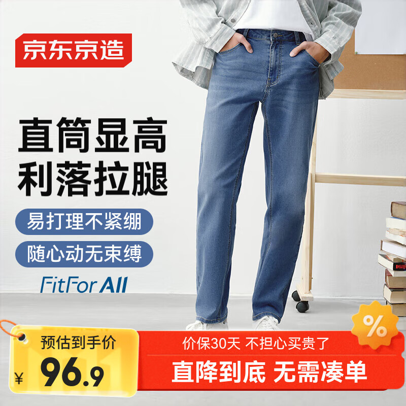 京东京造【高弹显瘦】牛仔裤男休闲裤子男直筒百搭 浅蓝 35
