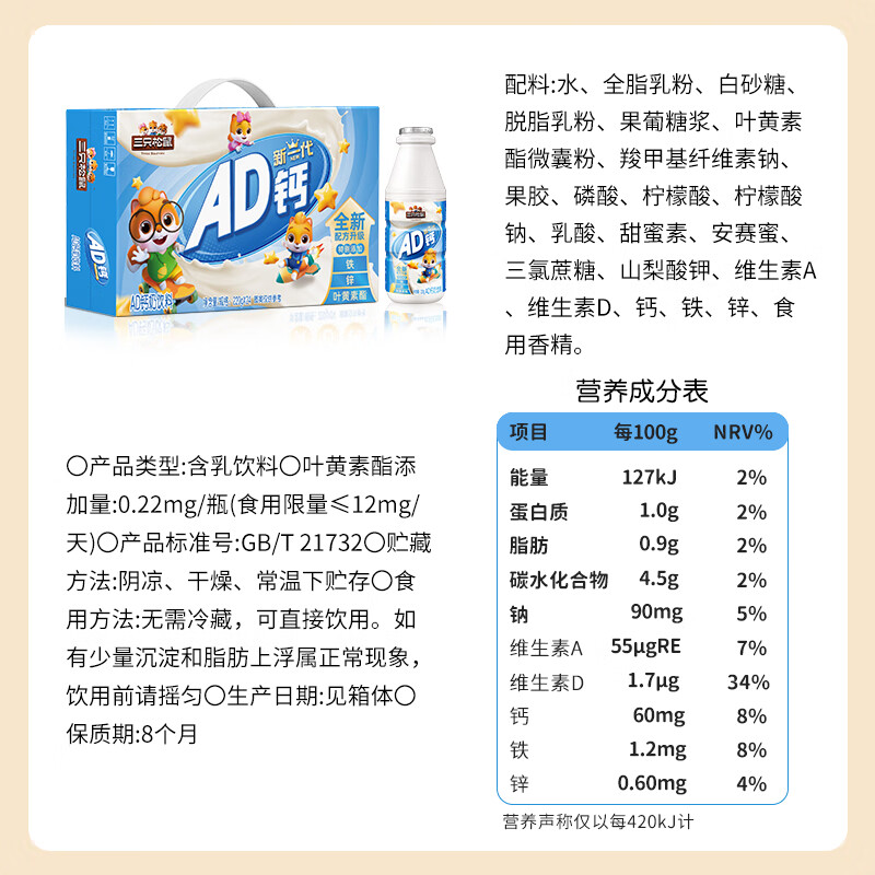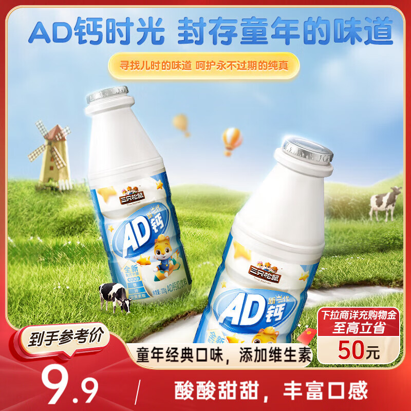 三只松鼠AD钙奶220g*4瓶儿童冲饮膏/浆童年怀旧维生素酸甜营养早餐牛奶