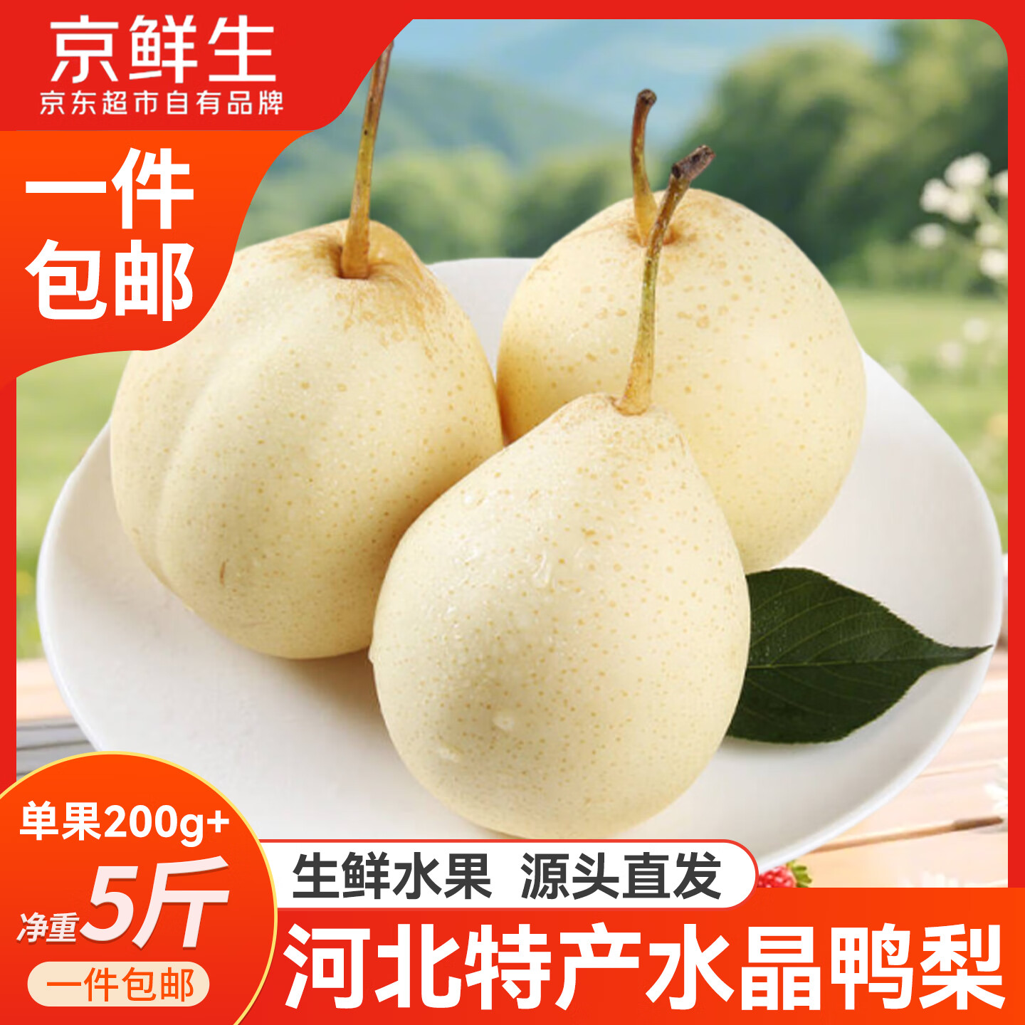 京鲜生河北特产水晶鸭梨 净重5斤 单果200g+ 生鲜水果 源头直发一件包邮