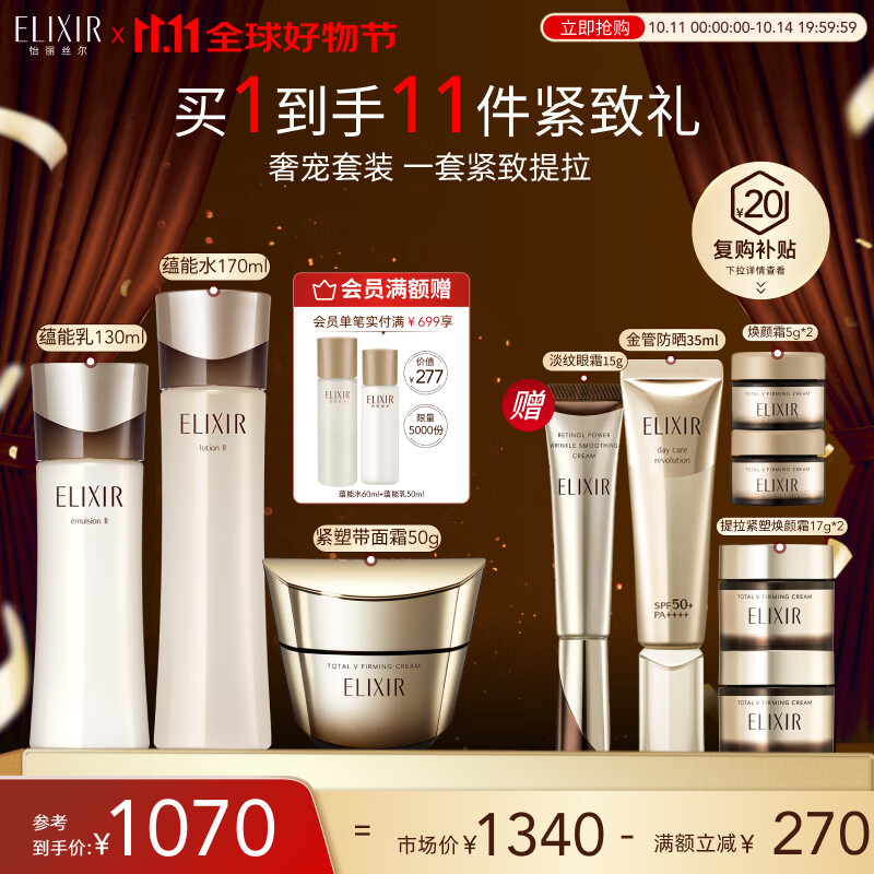 怡丽丝尔(ELIXIR)黑金水乳紧塑带面霜护肤品套装4周紧致保湿乳液礼物