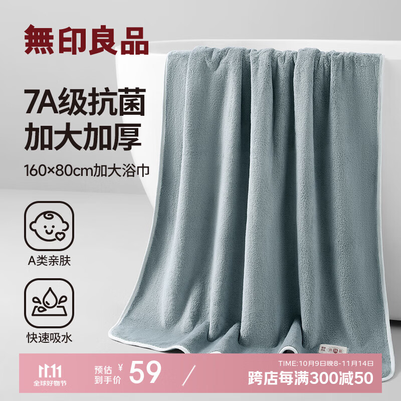 无印良品浴巾7A级抗菌亲肤柔软吸水加厚不易掉毛男士通用大浴巾灰色670g