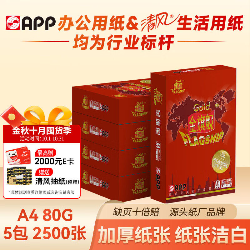 APP 金光APP 金旗舰(GOLD FLAGSHIP)A4/80g复印纸高档双面a4纸整箱打印纸500张/包5包/箱(2500张)